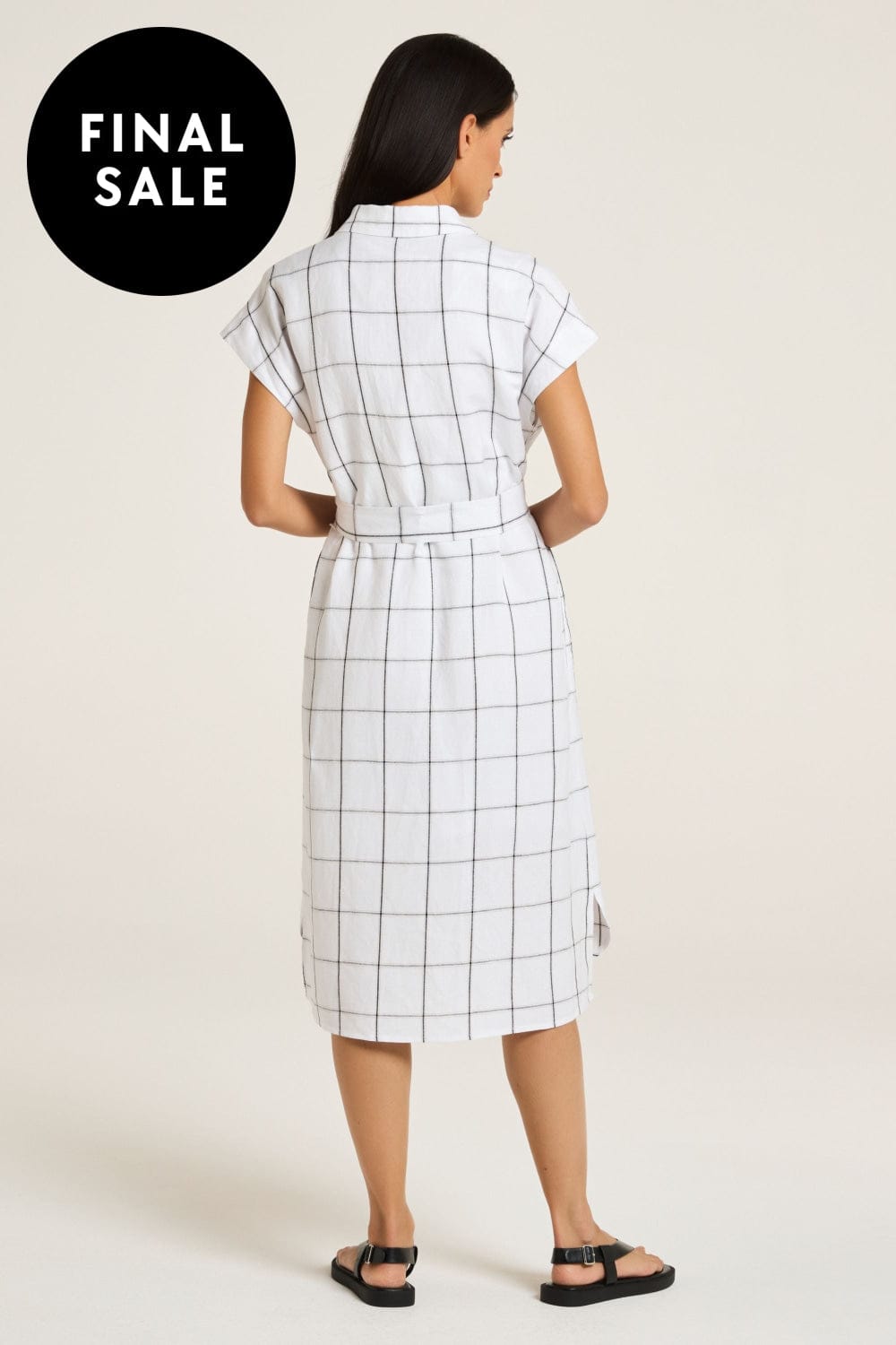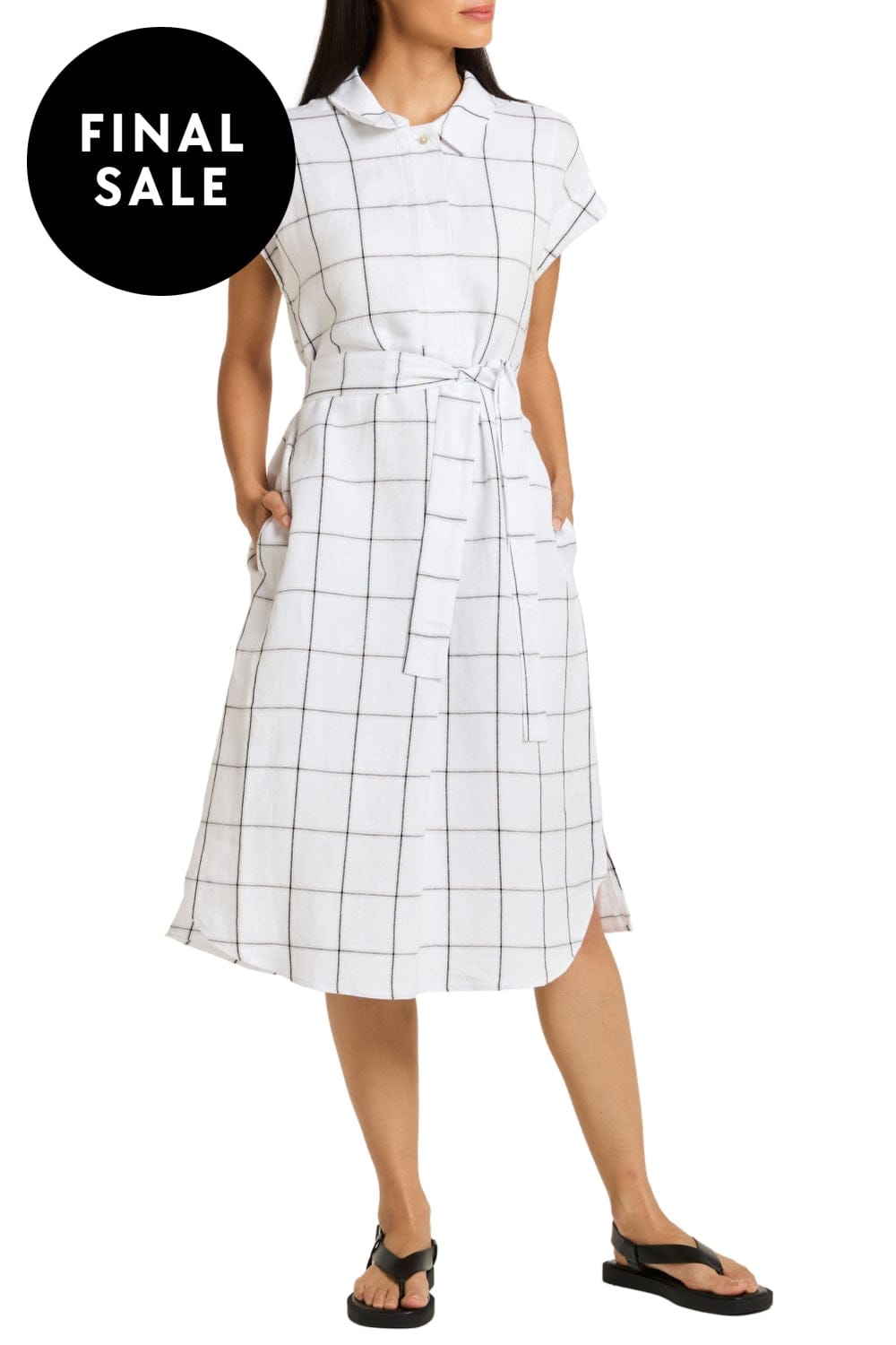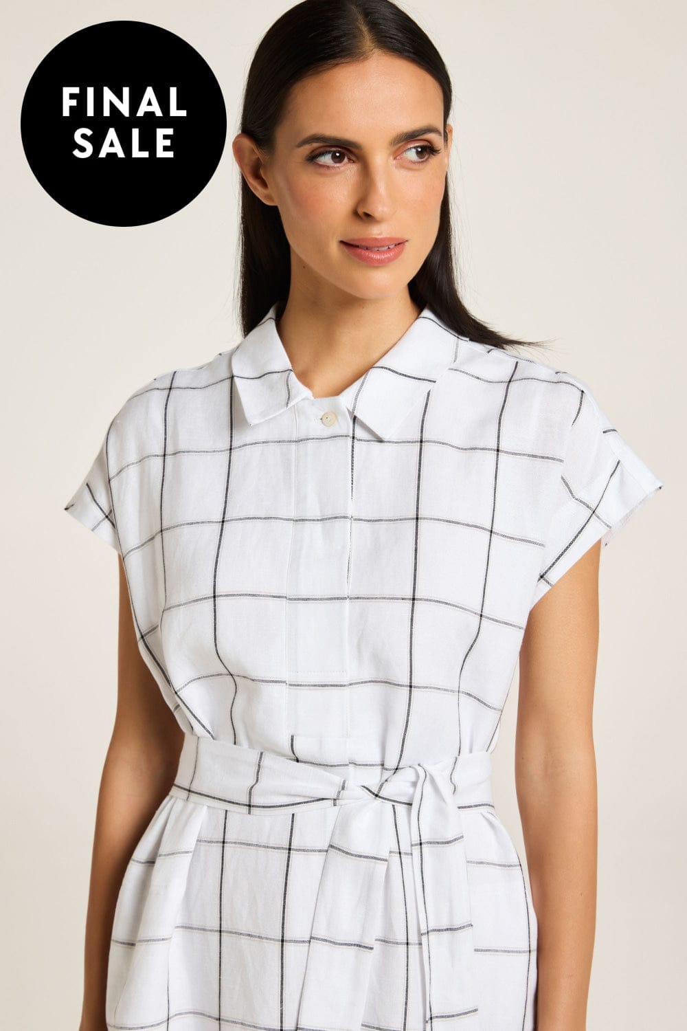 The Sentosa Dress epitomises minimal elegance with its exclusive yarn-dyed check pattern. Featuring a convertible collar and a concealed placket with a pleat, it includes extended sleeves and a waist tie for a relaxed fit. The knee-length design has a curved front hem with a split, while side pockets add practicality. Fully lined, it combines modern simplicity with timeless style, perfect for your summer wardrobe.