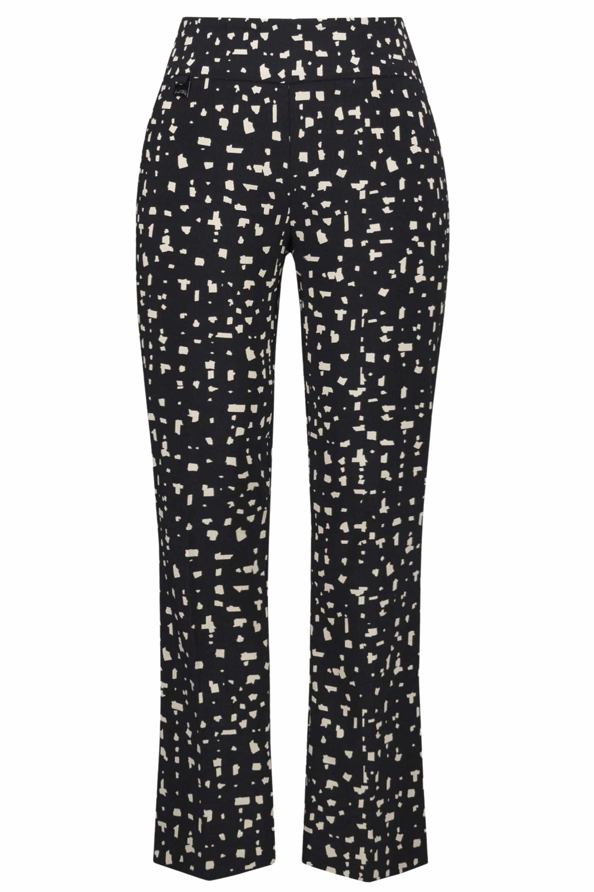 These Millennium pull-on pants showcase a sleek straight silhouette adorned with an eye-catching abstract print. The structured contour waistband, highlighted by a refined JR ornament, adds a touch of polished detail. Side slits at the hem enhance the design, creating a chic and contemporary finish.