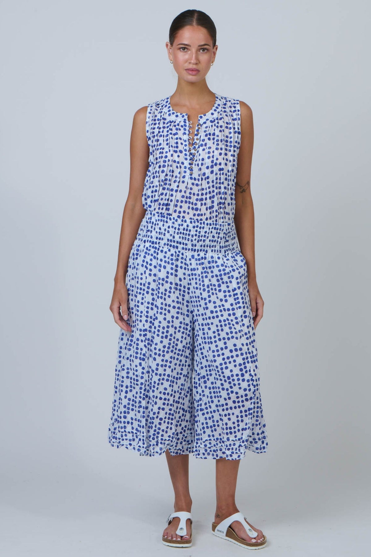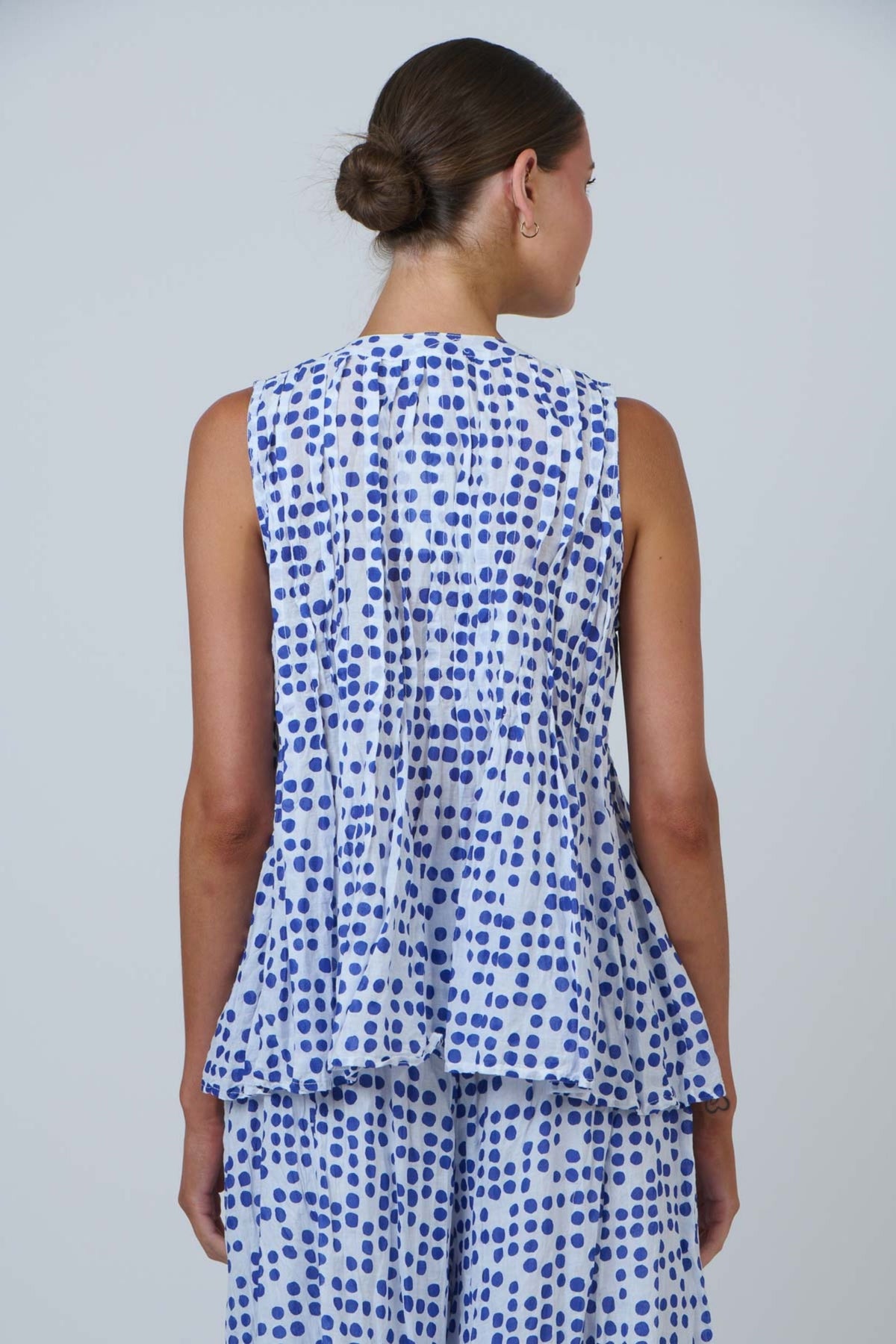 The Button Front Top adds artisanal texture to your everyday wardrobe with its distinctive vertical pleating and flowing silhouette. This sleeveless blouse features a partial button placket and a subtly notched neckline for a feminine touch. Crafted from lightweight 100% crinkle cotton, it offers an airy feel, making it perfect for effortless layering or standalone sophistication.