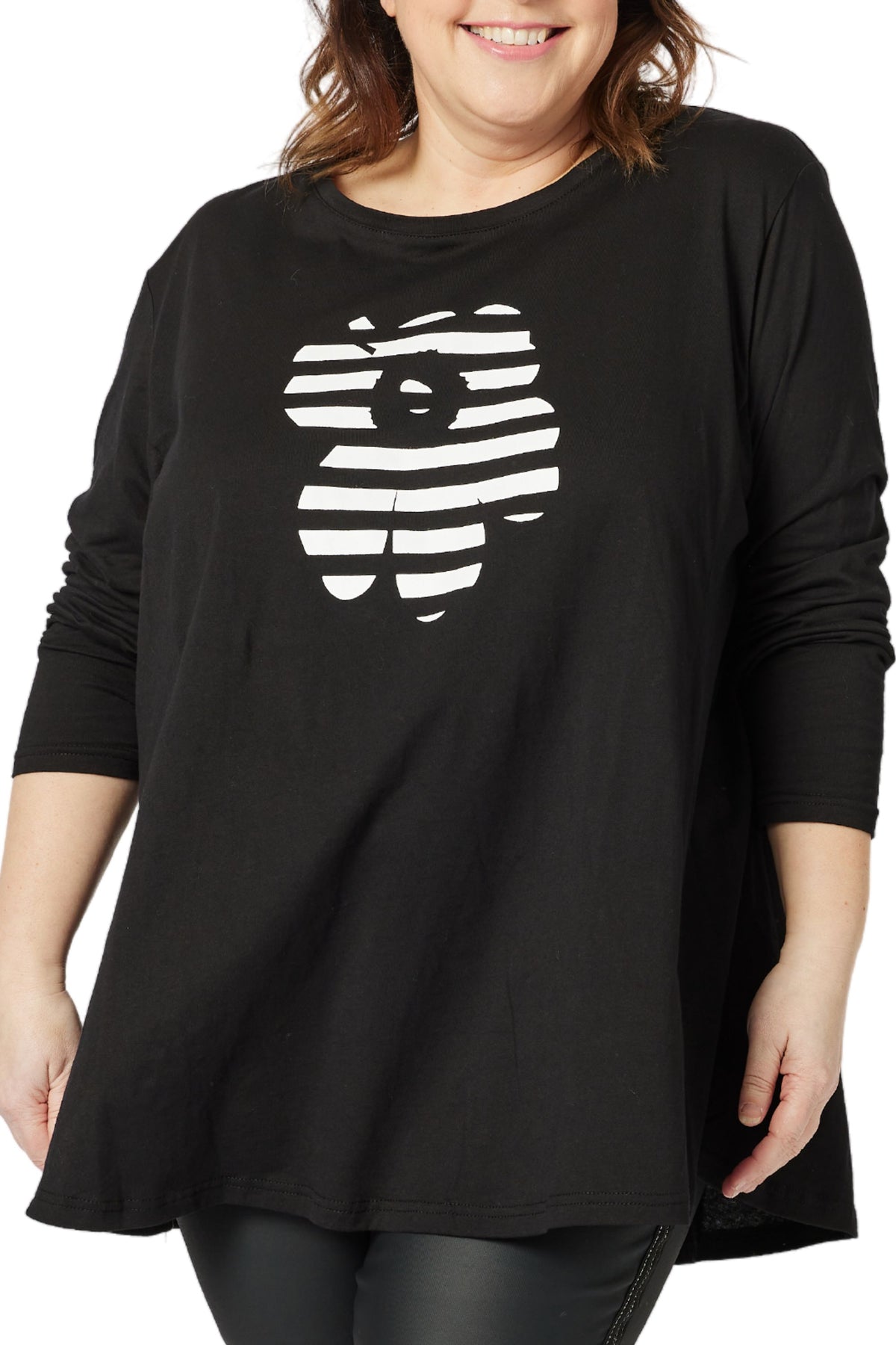 CLARITY TOP XS / BLACK STRIPE DAISY T-SHIRT - 45092C